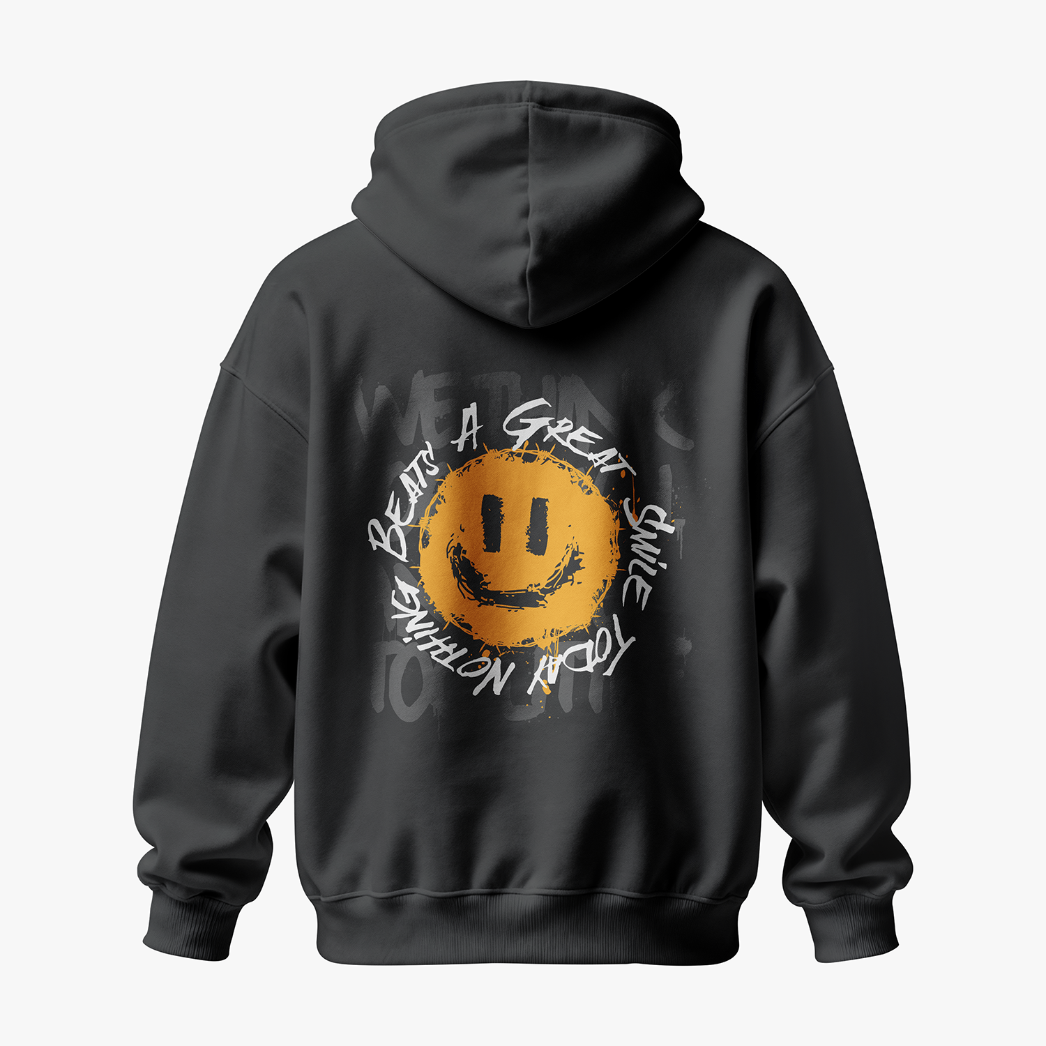 GOLDEN SMILE - OVERSIZE SİYAH HOODIE